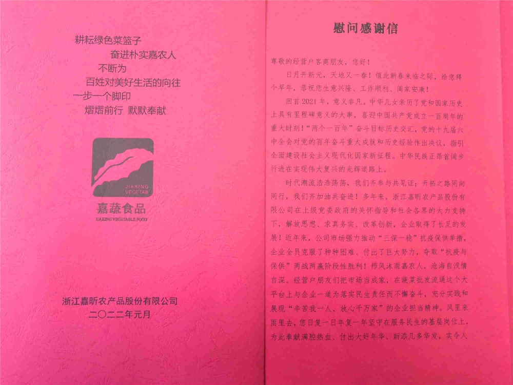 1、我公司黨組織積極響應(yīng)城南街道發(fā)起的關(guān)于在春節(jié)前開展慰問(wèn)活動(dòng)的倡議,精心組織配備了18份“愛心蔬菜大禮包”等慰問(wèn)品及時(shí)送達(dá)街道,融入到上級(jí)黨組織開展“歲寒情深、溫暖如春,節(jié)前走訪慰問(wèn)”的活動(dòng)之中。暖暖心意,美好問(wèn)候;歲寒情深,溫暖心田。