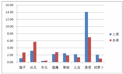 根據(jù)監(jiān)測(cè),上周蔬菜平均價(jià)格略微下降,原因由于經(jīng)過市場(chǎng)的及時(shí)調(diào)控,價(jià)格開始下降。