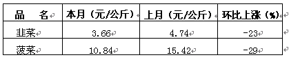 本月價(jià)格下降幅度大的有2個(gè)蔬菜品種,具體如下:
