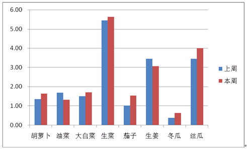 胡蘿卜環(huán)比上漲172.73%,油菜環(huán)比上漲146.51%,大白菜環(huán)比上漲130.00%,生菜環(huán)比上漲78.29%,價格上漲。