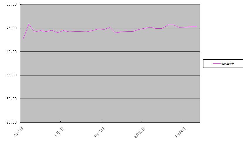 大帶魚、大黃花魚兩種海水魚批發(fā)均價為44.64元/公斤,環(huán)比上升4.3%,同比上升12.9%。